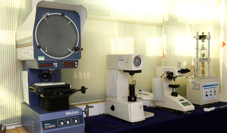 可独立完成全尺寸测量, CPK监测, 产品成分检测, Rohs检测, 硬度, 拉力扭力, 表面光泽度, 色差, 盐雾测试, 高温高湿, 高电压测试, 气密性测试等全套检测.